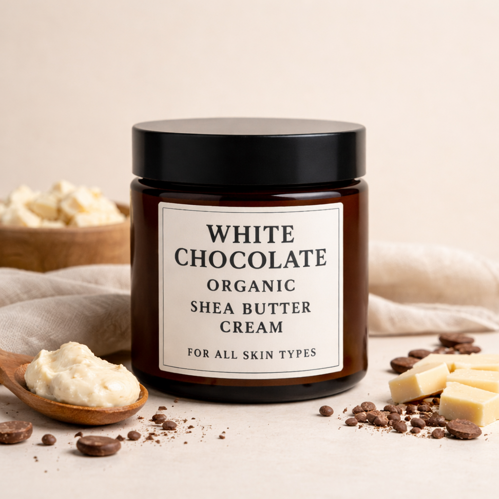Wrap your skin in rich, lasting moisture with our Organic White Chocolate Shea Butter Cream — a velvety, handcrafted formula designed to deeply nourish and soften dry skin.